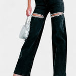 Atemporal con un toque moderno, los Jeans Evian fusionan denim inspirado en lo vintage con una actitud audaz y contemporánea. Con detalles desgastados y adornos de rhinestones, logran el equilibrio perfecto entre un estilo relajado y un glamour sutil. El corte recto y relajado mantiene un aire fresco y desenfadado, ideal para días de descanso o noches elegantes.