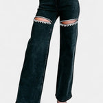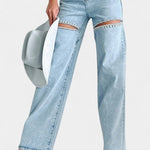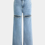 Evian Jeans Ripped Straight-Leg con Rhinestones