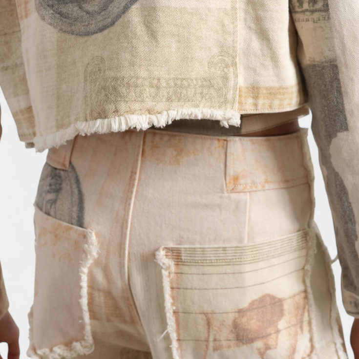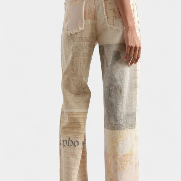 Inna Pantalones Rectos de Cintura Alta con Estampado de Mármol