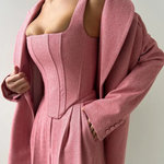 El conjunto Dolce une la sofisticación clásica con la elegancia moderna. El blazer de doble botonadura con ajuste perfecto te otorga una presencia estilosa y segura, mientras que el pantalón y el top a juego crean una imagen armoniosa y completa. Ya sea para reuniones de negocios, ocasiones elegantes o looks de estilo urbano moderno, este conjunto es una verdadera pieza de declaración.