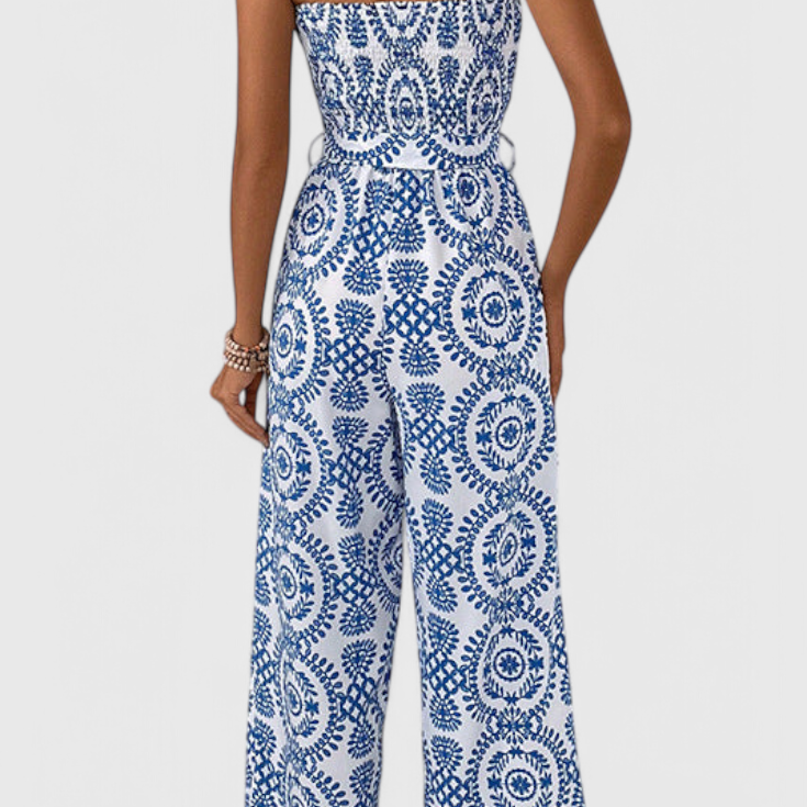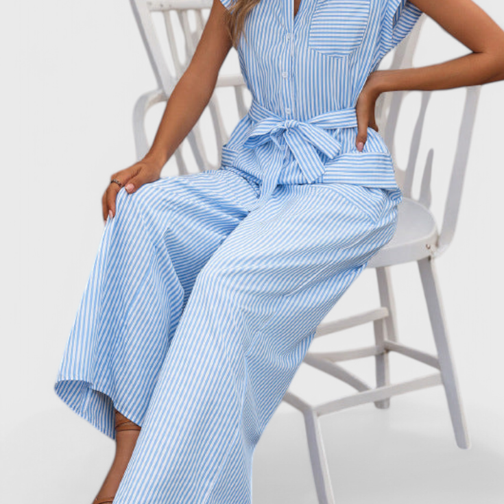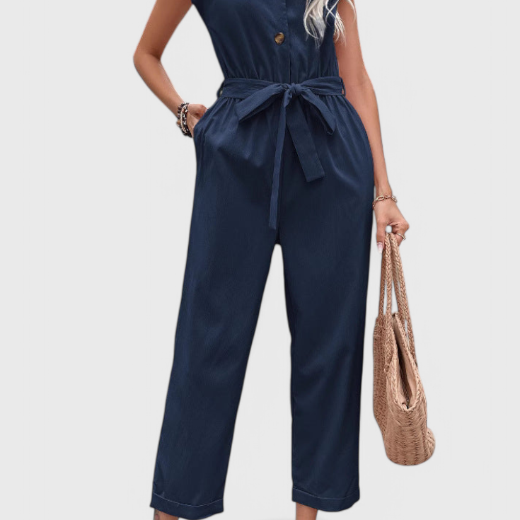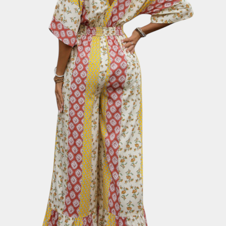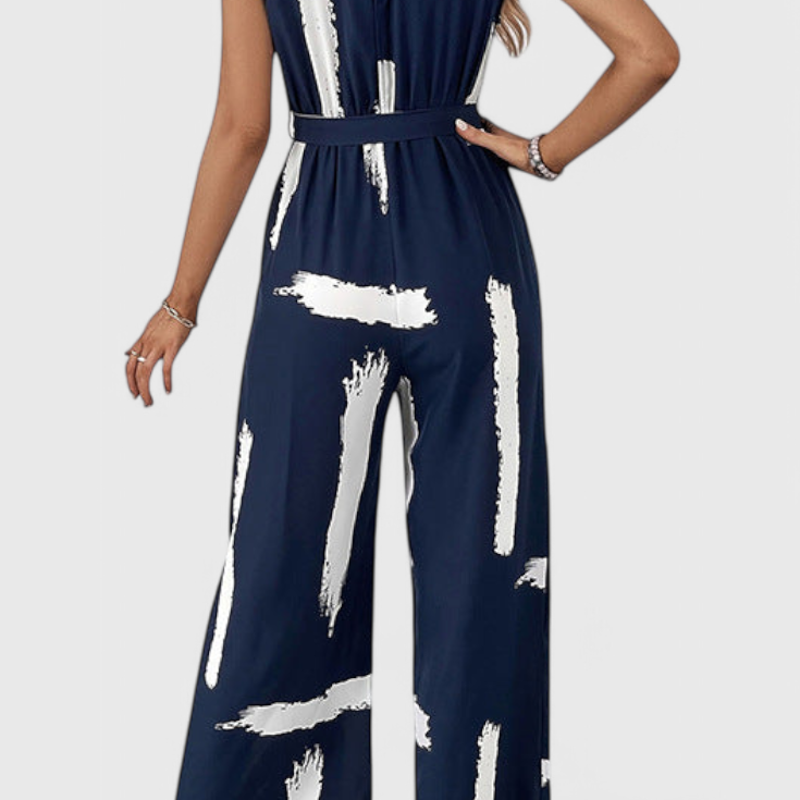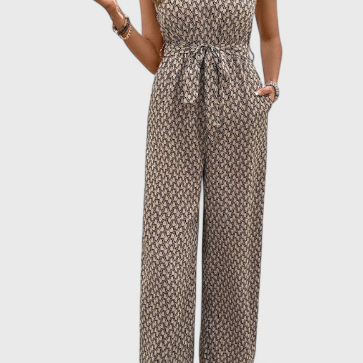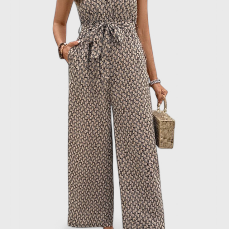 Ariane Mono de Pierna Ancha con Escote en V y Cintura con Lazo