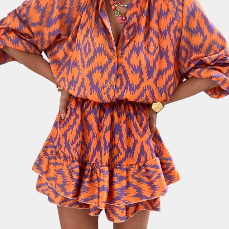 Yasmine Mono Mini con Volantes y Estampado Ikat