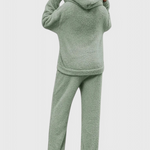 Billie lleva la calidez y suavidad a un nivel completamente nuevo. Diseñado para los acogedores días de invierno, este conjunto de dos piezas de teddy cuenta con una sudadera de corte relajado con un espacioso bolsillo tipo canguro y pantalones de felpa a juego. Ya sea que estés descansando en casa o manteniéndote caliente en las frías mañanas, Mia te envuelve en comodidad sin comprometer el estilo.