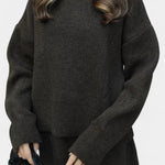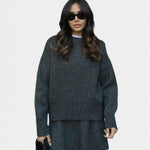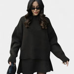 ✨ Contraste elegante – Jersey oversize holgado se combina con falda entallada