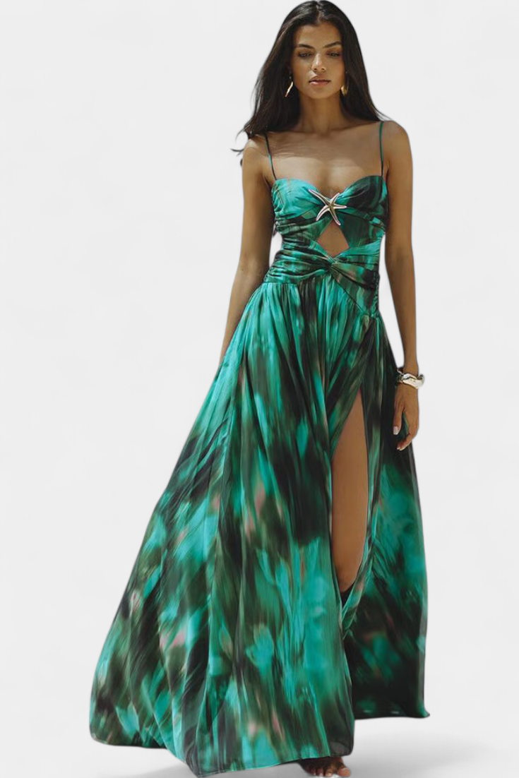 Una silueta encantadora con alma marina. El conjunto Ahria destaca por su delicado estampado de estrellas de mar y su falda acampanada con detalles calados, fusionando comodidad y originalidad en una sola pieza. Diseñado para destacar con un toque femenino y veraniego.
