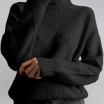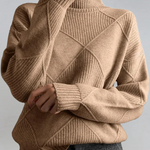 Este suéter de cuello alto lujoso está confeccionado en una mezcla de cachemira suave que es tan agradable de llevar como de ver. La tela es cálida, transpirable y diseñada para ser delicada con la piel: no pica ni irrita. Su corte fluido y silueta favorecedora lo convierten en una elección imprescindible para un look cuidado mientras te mantienes perfectamente cómoda. Perfecto para usar en capas o solo, es una pieza atemporal para añadir a cualquier guardarropa de invierno.