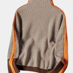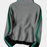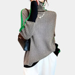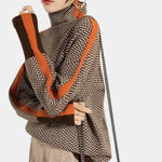 Imagina… una mañana de otoño en Madrid, el aire fresco, un café caliente en la mano. Te pones tu jersey, sientes la suavidad reconfortante del tejido y la elegancia natural de su cuello alto. Las rayas contrastadas no son solo un detalle: esculpen tu silueta y atraen la mirada con discreción y estilo.
