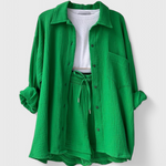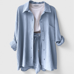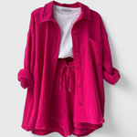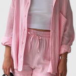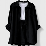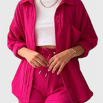 Comodidad chic para mañanas lentas y tardes relajadas. El Conjunto Xenia está confeccionado con un tejido premium para una sensación suave y transpirable que se mueve con facilidad. Con un top relajado y un collar elegante, además de pantalones cortos juguetones, combina comodidad y sofisticación de una manera que se siente effortless—ya sea que te quedes en casa o salgas.