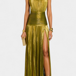 Emma Vestido Halter Metálico con Espalda Abierta y Abertura Alta