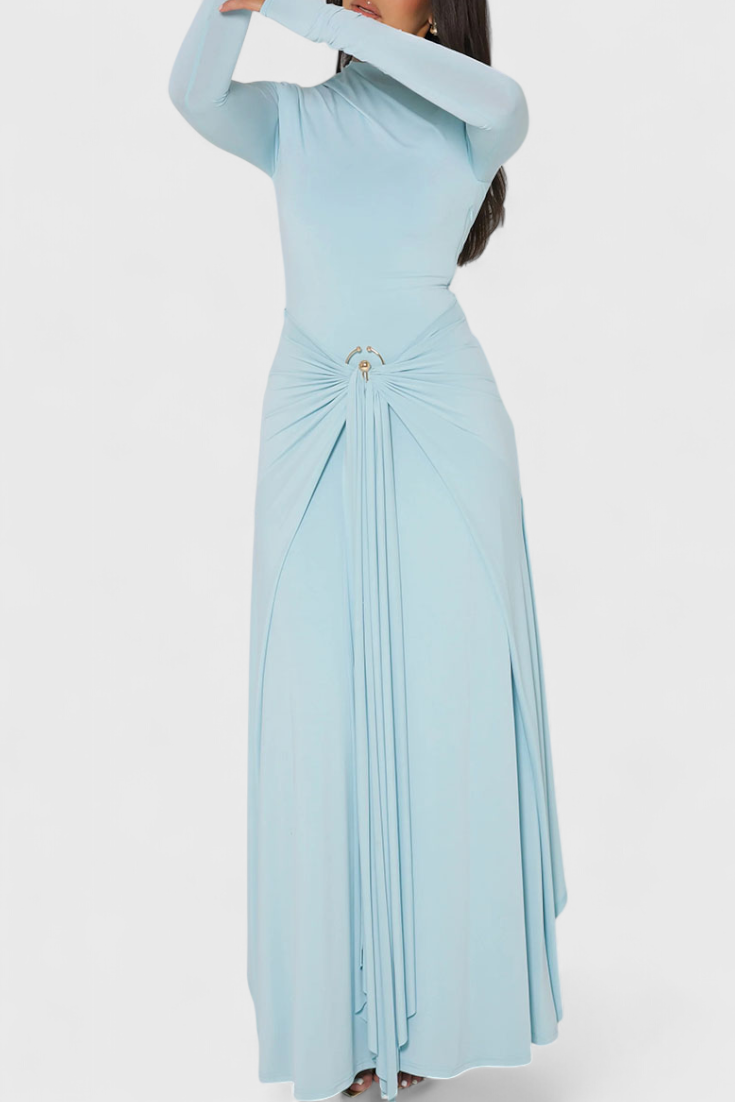 Fátima Vestido Ajustado Plisado con Detalles Metálicos
