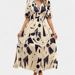 - Escote en V y mangas abullonadas añaden un toque romántico