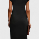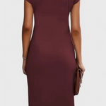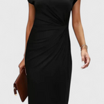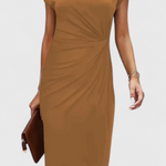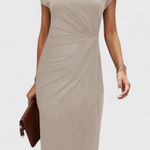 Katrina Vestido Midi Atemporal con Cuello Redondo y Detalle Drapeado