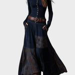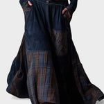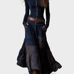 ✔︎ Falda maxi con panel en cuadros – El diseño de cuadros en tonos marrones y azules añade un toque retro único y fluidez al movimiento.