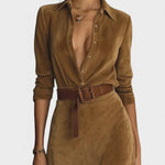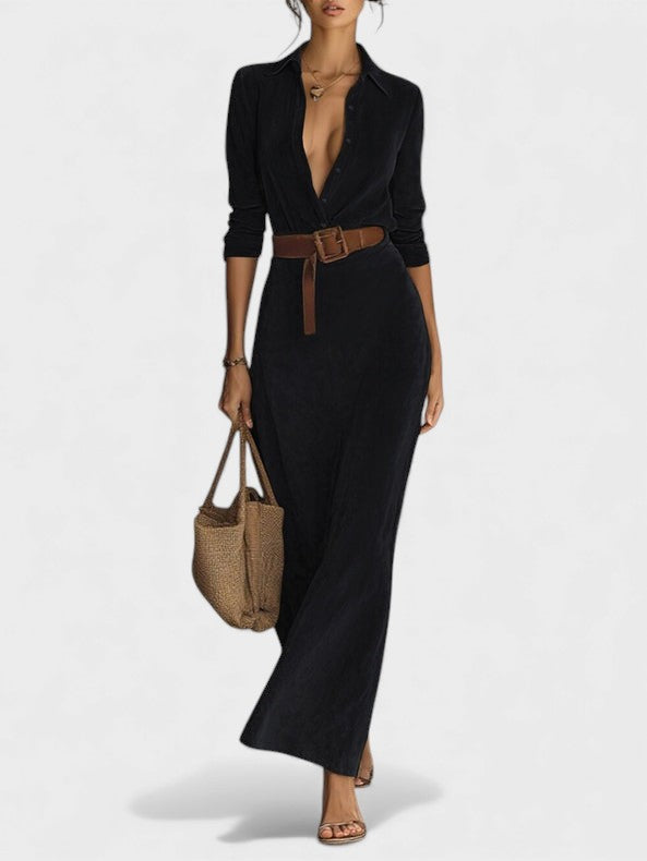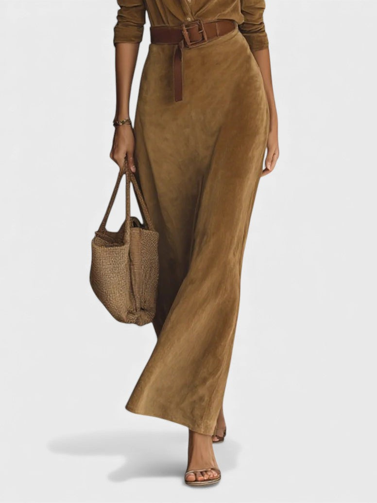 Mónica™ | Vestido largo de gamuza con cinturón ajustado