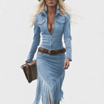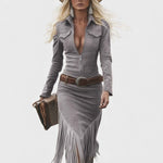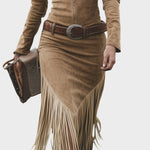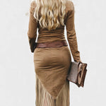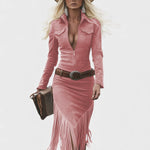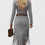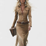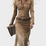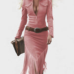 Olga™ | Vestido midi retro con flecos y cierre