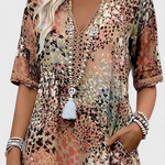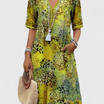 Espíritu libre y encanto artesanal para un verano lleno de estilo. El vestido Perla destaca por su escote en V decorado con encaje de crochet y una silueta A-line que fluye con naturalidad. Su mezcla de estampado floral y animal print añade un aire bohemio ideal para días despreocupados.
