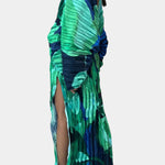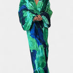 - Tejido ligero impreso en tonos verde-azulados para una sensación fresca y lujosa