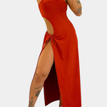 El vestido Teuta combina una silueta esculpida con detalles funcionales y modernos. Su escote sin tirantes resalta con elegancia, mientras el bodysuit interior aporta soporte y estructura. El lazo lateral ajustable define la cintura con un aire coqueto, y la abertura alta añade fluidez con un toque dramático.