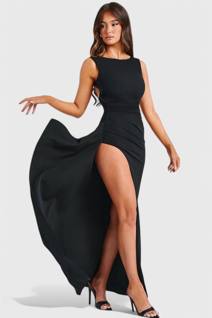 Marion Vestido de Satén con Espalda Abierta y Gran Abertura