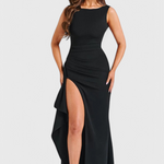Diseñado para cautivar, el Vestido de Noche Marion se trata de una sofisticación elegante. Con su silueta ajustada, acabado de satén lujoso y dramática espalda abierta, este vestido de largo completo es la elección definitiva para hacer una entrada. La alta abertura añade movimiento y atractivo, haciéndolo perfecto para galas, noches formales y momentos de alfombra roja.