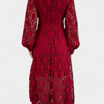Jovie Vestido Midi de Encaje Bordado con Cuello Alto