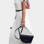 - Diseño asimétrico que añade dinamismo a una silueta clásica