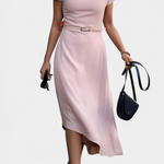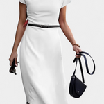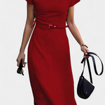 El vestido Florence destaca por su silueta A-line relajada y su diseño asimétrico que aporta carácter sin perder elegancia. Con cuello alto estructurado y mangas cortas, es una prenda pensada para quienes buscan un look urbano con estilo sobrio y contemporáneo. Perfecto para días activos con un toque refinado.