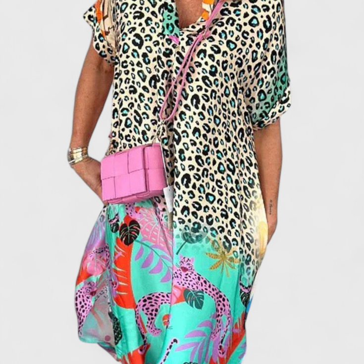 Gala Vestido Boho Casual con Estampado de Leopardo y Escote en V
