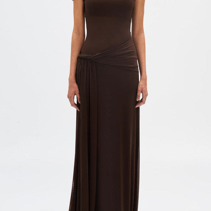 Eranda Vestido Maxi de Malla Drapada Off-Shoulder