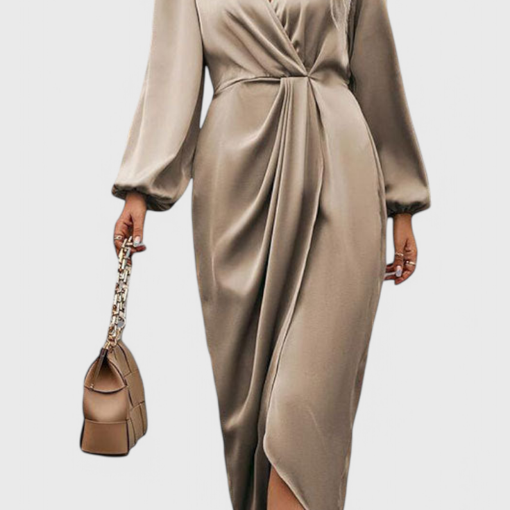 Giada Vestido Largo Elegante con Escote en V y Abertura Lateral