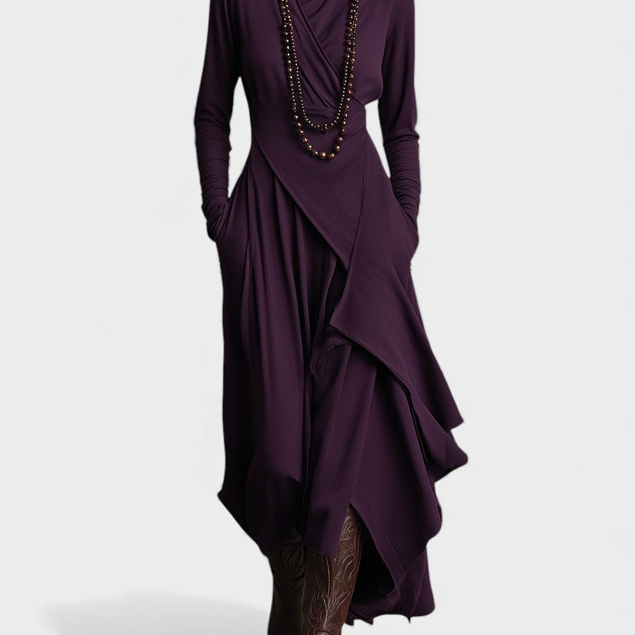 Sandra™ | Vestido maxi de punto asimétrico con cuello alto