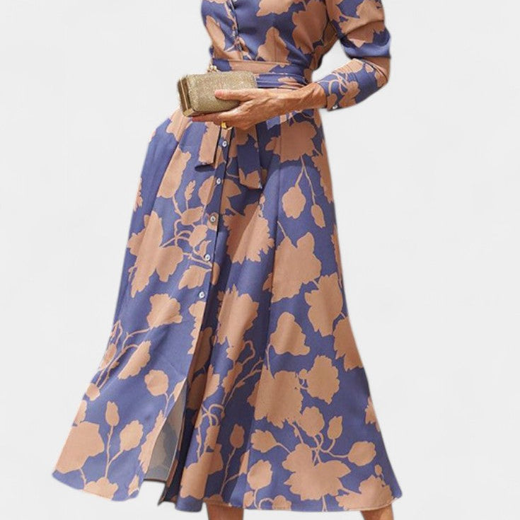 Rovena Vestido Midi de Lunares con Cuello Camisero y Cintura Ajustable
