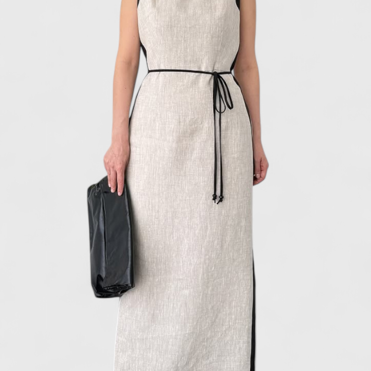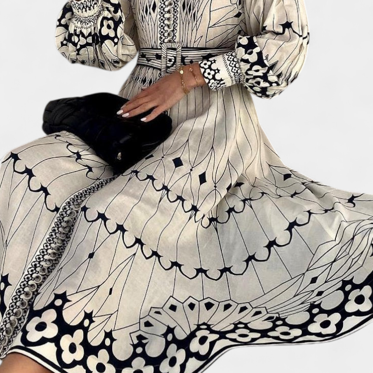 Salma Vestido A Línea con Estampado Minimalista y Cuello en V