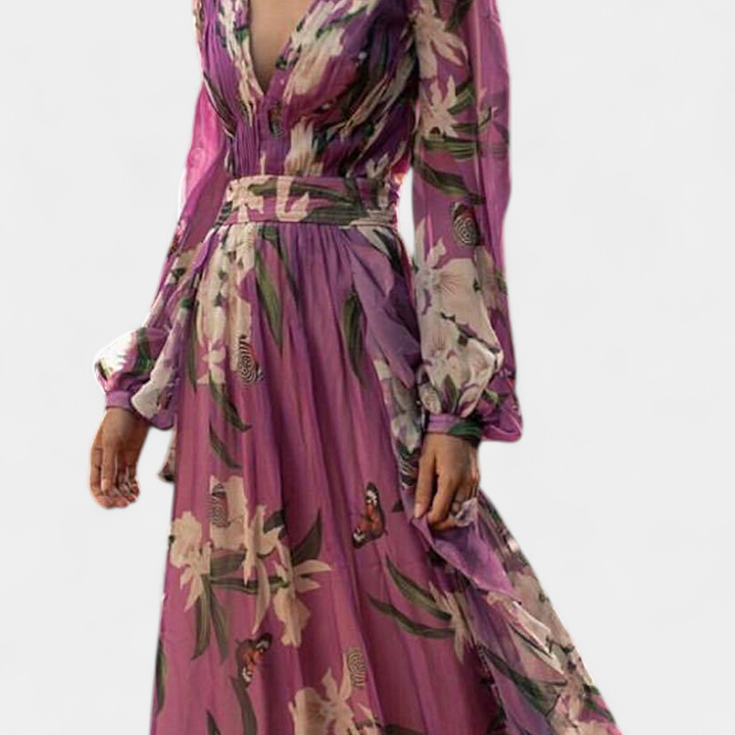 Shiloh Vestido Maxi Plisado con Abertura Lateral y Escote Cruzado