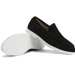 Loafers de ante - Negro: Estos loafers versátiles combinan comodidad y elegancia, perfectos para pasar de la playa a una cena al atardecer.