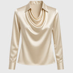 Esta blusa satinada para mujer es la elección perfecta para quienes buscan elegancia y sofisticación en su día a día. Su diseño con cuello drapeado y acabado brillante aporta un toque de glamour sutil que realza cualquier outfit.