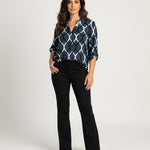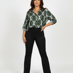 La blusa Nora destaca por su moderno estampado gráfico, que le da a tu look un toque trendy al instante. Con su corte holgado y su tejido ligero, esta túnica ofrece la máxima comodidad, mientras que las mangas tres cuartos le dan un aire elegante.