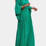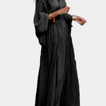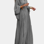 Destaca con este vestido maxi de manga larga que presenta un favorecedor escote en V y un atrevido patrón geométrico. Con su silueta elegante y caída fluida, aporta una elegancia moderna y un encanto seguro tanto a los momentos cotidianos como a las ocasiones especiales.